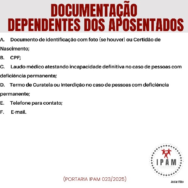 De acordo com Kleber Lima, diretor-presidente do IPAM, a partir desta data, todos os aposentados e pensionistas municipais devem comparecer ao órgão, munidos de todos os documentos comprobatórios que estão listados na referida Portaria.